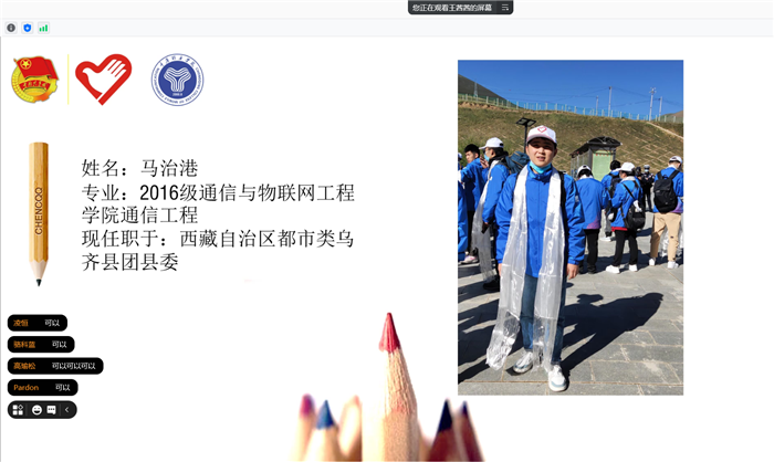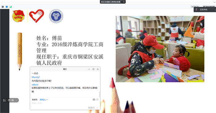 为积极响应团中央计划重大人才工程,鼓励青年学生投身西部建设,增强我校青年大学生的综合能力和服务意识,引导和鼓励我校毕业生参与到西部基层工作中去,弘扬“奉献、友爱、互助、进步”的志愿精神。淬炼商学院青年志愿者协会于2021年4月7日通过线上的方式开展西部计划宣讲会,使得同学更好地了解西部计划,坚定志愿者投身于西部经济文化的建设、贡献青春力量的决心。