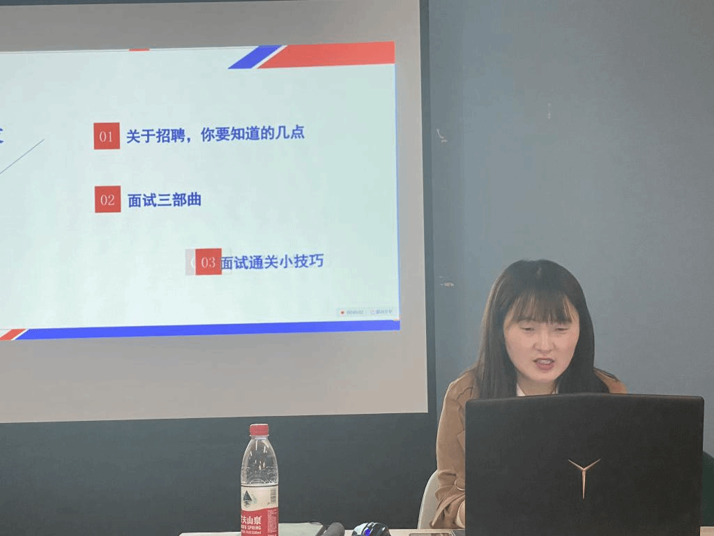 伴随陈婷婷老师简洁的开场白后,活动正式开始。陈婷婷老师首先提出面试的自我准备,技巧及种类。她强调好的自我介绍决定了面试的80%,在自我介绍时,从面试岗位的需求入手,可以在面试官前留下较好的印象。面试者在面对面试官抛出的问题,应围绕行业,企业,岗位三个方面作答。在问及自身优缺点时,要坦诚面对,扬长避短。