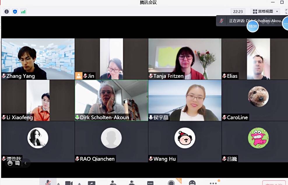 中德双方教师随后展开热烈交流,介绍各自的教学基本情况并就欧标考试备考、教学模式等提出了相关问题。大家保证相互间教学资料的互通有无,促进课堂融合,也就新形势下在线课程的展开方案进行了深入研讨。此次交流会的在场所有与会人员都感觉获益良多。