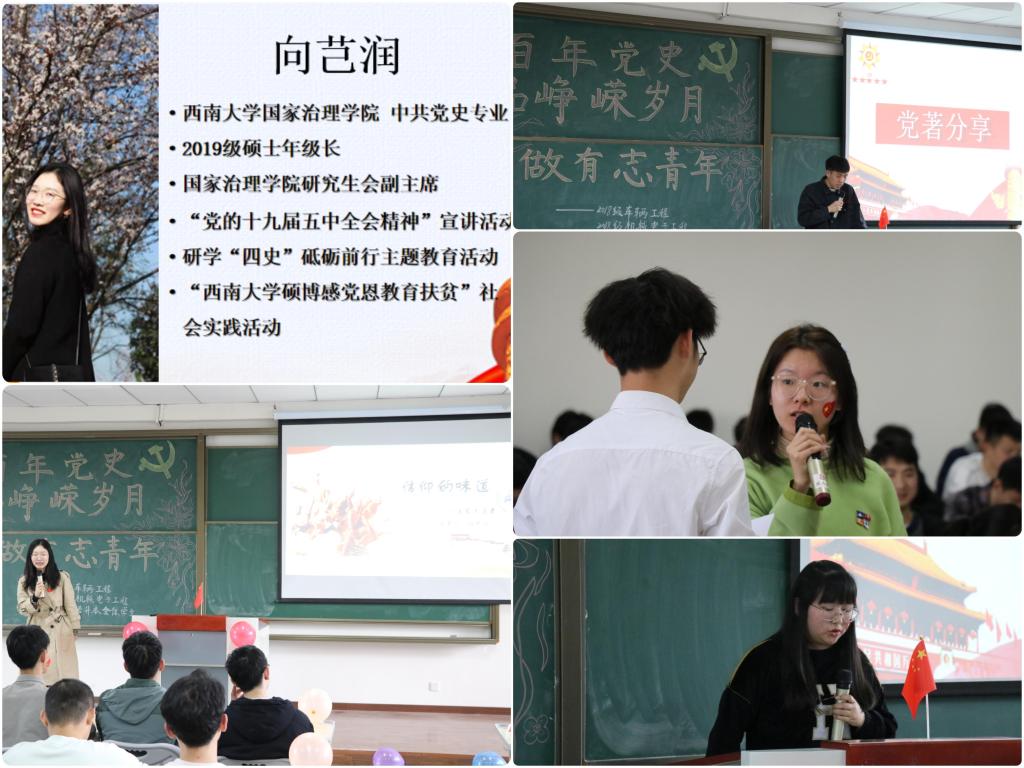 “无国岂能有家,无党谁打天下”,这深刻凸显了中国共产党带领我们走向胜利的关键性和重要性。为庆祝中国共产党建党100周年,引导同学们学史明理、学史增信、学史崇德、学史力行,智能工程学院2018级车辆工程、机械电子工程、机械设计制造及其自动化各团支部辅导员胡慧敏及全体学生,于2021年3月24日在双栀书院302教室,开展“学百年党史、品峥嵘岁月、做有志青年”主题团日活动。