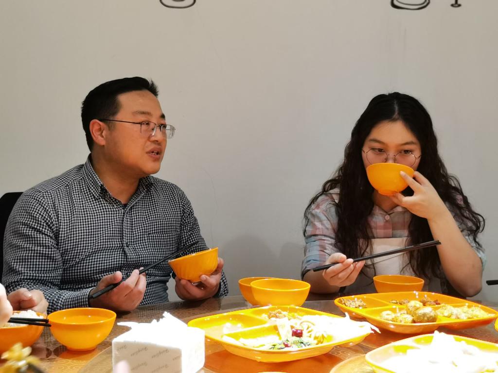 老师们亲切地给同学们夹菜,就餐时,侯院长叮嘱大家,足够的学历与底蕴,才能在这个充满竞争的社会拥抱自己美好的未来。武院长也表示,同学们要多读书、读好书,大学生活是最需要努力的。李教授微笑点头表示肯定与鼓励,谈到没有什么事情是一帆风顺的,同学们需要在这个阶段认清自己,改变自己,更好的出发。同学们纷纷表示受益匪浅。