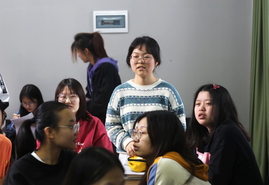 “我知道,选B!”“第三组回答正确!加一分。”伴随着声音落地,房间里也传来欢呼和叹惋。大家翘首以待的体育知识竞赛于4月13日中午在花果书院功能室火热进行中。比赛过程中,大家各展所长,各参赛队员精神饱满、机智应战、配合默契。必答题环节,参赛队员们沉着冷静;抢答题环节,大家踊跃参与,你追我赶,不断地刷新比分;趣味答题环节,高潮迭起,精彩纷呈。第四组的滕沁同学更是积极,眼睛一动不动地看着屏幕,待题目念完就猛地站起,她们组的比分也遥遥领先。“我当时真的有一种集体荣誉感,就想着快点站起来快点站起来,好在我们组比分也挺高的,我也很高兴,这是我们四组整个的荣誉!”她这样说道。