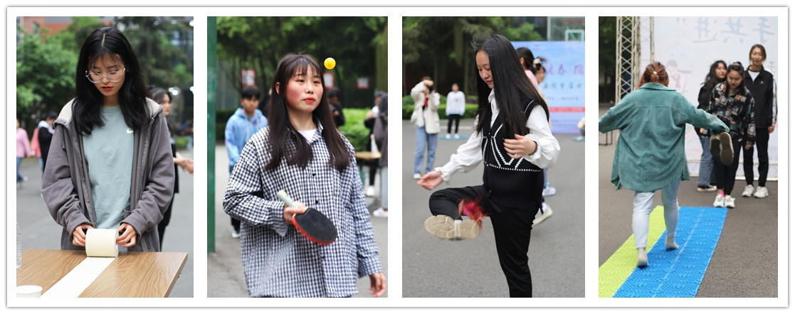 当大脑风暴告一段落,刺激的运动环节就更精彩了!4月14日下午4点趣味运动会在主持人的解读中拉开序幕,当动感的音乐响起,同学们分别在几个运动区域开启了自己的运动“征程”。几个项目同时开始,花果书院广场上都是同学们活跃的身影,不论是六人五足比赛时一排排在脚边飘扬的气球,“一二一二”整齐的口号,或是指压板上“轻功水上漂”的轻盈跳跃,边喊着“好痛好痛”还是朝着终点出发的背影,无一不展现出了她们的风采。最让人印象深刻的当属同心协力接力赛。几个小环节趣味十足,不仅考验组内默契合作,也需要展现运动实力。从卷纸抽水杯到旋风跑,大家都配合十足,而踢毽子时却是“笑料频出”,“我的脚不听我使唤啊!”“这个毽子有自己的想法。”这些金句让大家笑成一团,在欢声笑语中结束了比赛。