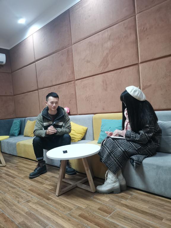 也许是因为王喻珑学长已经拥有了步入社会的经验,所以他在整个采访过程中都表现得十分游刃有余,对我们的大学生活和未来走向也非常关心,主动讲述了很多自身学习和工作的经验,并且鼓励我们要勇往直前。他很细心,“天气有点冷,我帮你们把空调打开吧。”马上就去学生值班室进行沟通。