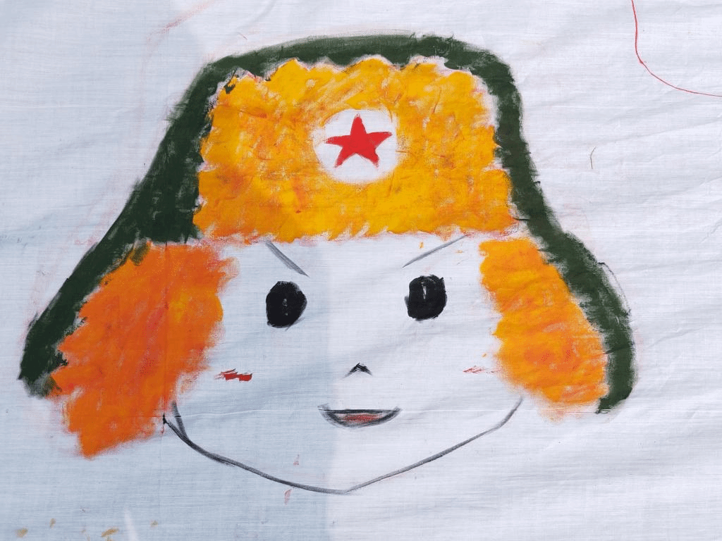 (带着红领巾为党献礼的卡通人物)