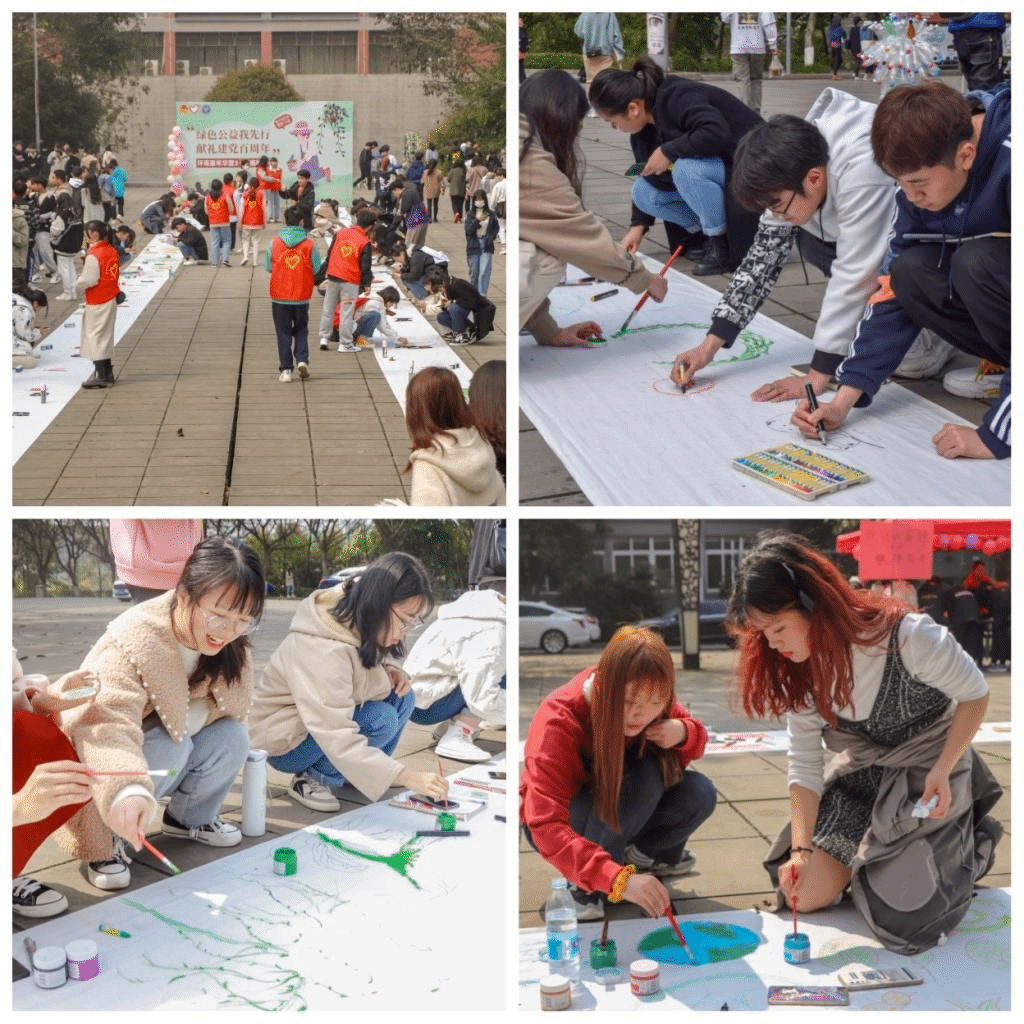 3月11日不少师生就被黄桷树广场摆开的“百米画卷”吸引了过来,大家都在画卷上留下了对打造绿色地球的期望和对党的祝福。在欢快的歌声中,长达100米的超长画卷上出现了栩栩如生的“蓝色地球”、“Q版天安门”、“动画版雷锋”、“绿色家园”