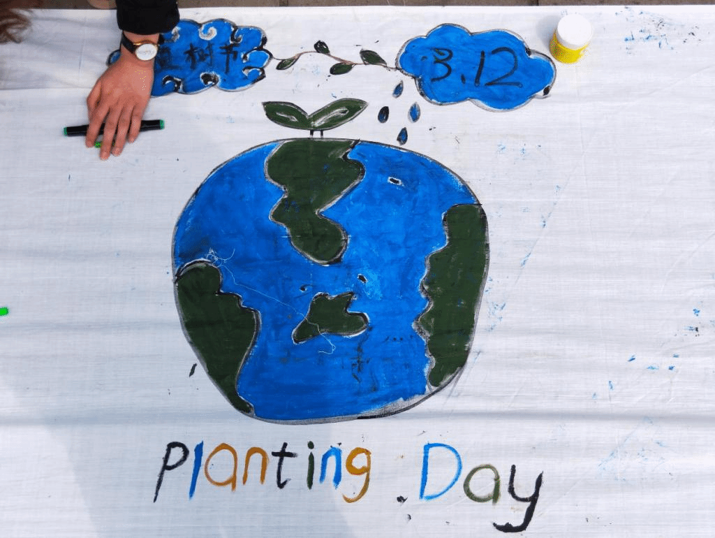 完成画卷的参与者,纷纷来到环保知识问答区域,回答问题后还有机会领取到属于自己的小树苗。3.12植树节当天与小伙伴一起在C区活动室外天台种下一颗“绿色梦想”,来年为校园增添一抹靓丽风景。