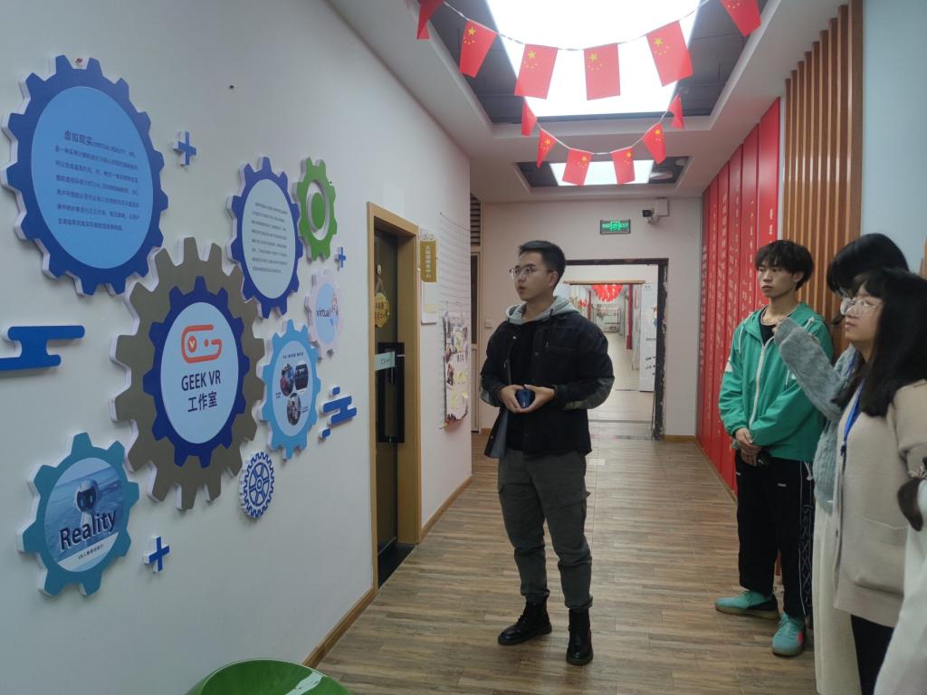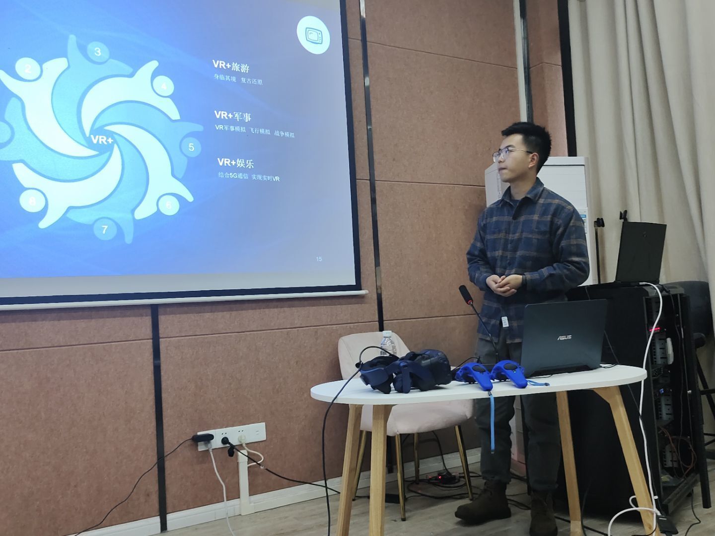 这是杨志建立VR工作室的初衷,提出了想法的他很快聚集了一批志同道合的伙伴,在廊桥学业导师耿强老师的帮助下,Geek(极客)VR工作室于2020年10月20日廊桥书院正式挂牌成立,工作室旨在打造一个兴趣与专业并存,为爱而发电,一起研发虚拟世界VR。一年时间,工作室成员很快完成从1到10的突破,也建立起团队大一从大四的梯队配置,现在如果还要问杨志为什么创立工作室,他会回答“热爱与自信!”
