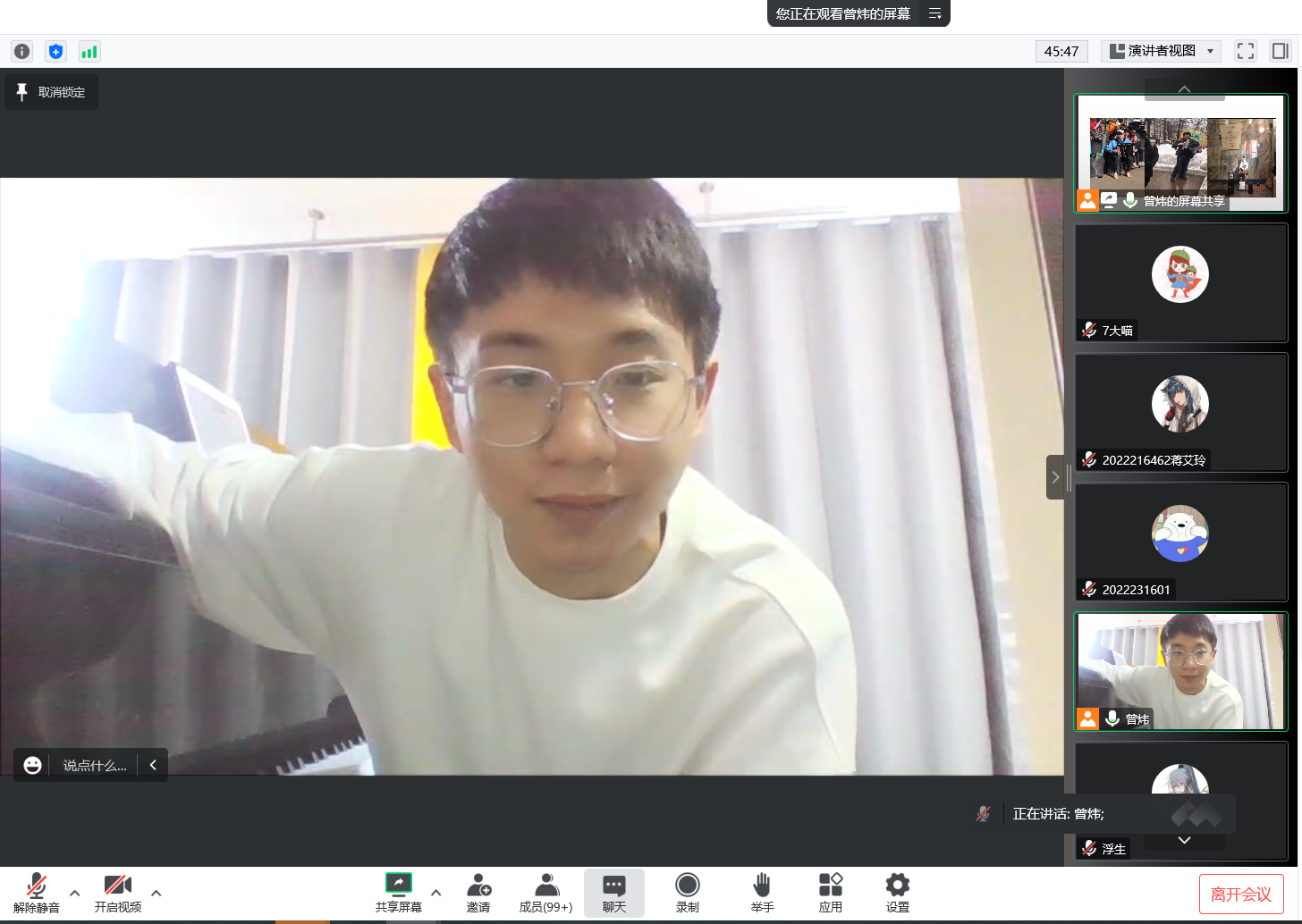 还要多久才能和你接近,一首《水星记》实现了鱼城书院学生自治委员会全体成员相聚的愿望。为缓解疫情时局下同学们焦虑不安的情绪,11月9日下午15点,鱼城书院在腾讯会议上举办“天涯共此时——2022疫情下的移通·书院宿舍印象时刻”的活动。