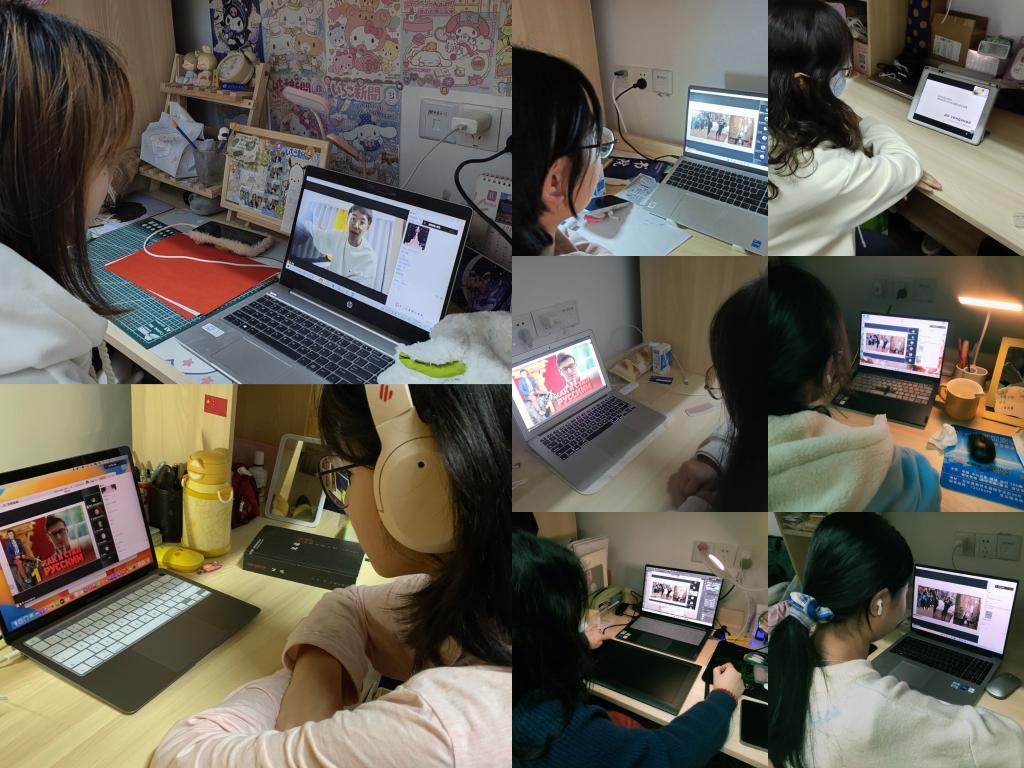 活动开始时各位同学探索记录短剧故事,有自我创作的趣味视频、为疫情防控拍摄的创意视频,经典影片翻拍、妆教、变装模仿视频、宿舍情景剧等。不到半小时报名就已报满100个参赛团队近500名学生,进入QQ咨询群通过询问工作人员了解活动相关信息,同时同学们积极在群里互相交流寝室生活,寻找视频拍摄创意点。活动首日收到投稿45个,话题累计播放量8万+。