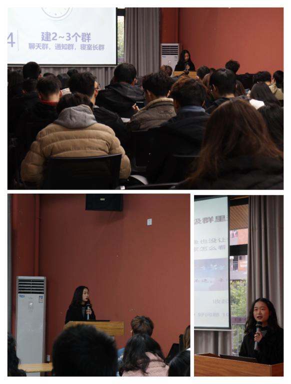 杨灏湲学姐作为优秀团支书代表跟大家分享作为班委的一份子应该如何处理班级内部事务、正确处理情绪以及如何高效率办公等经验分享。