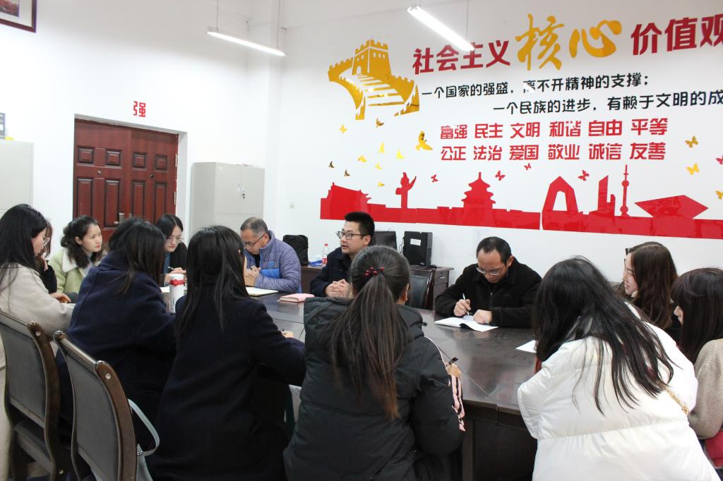 其后,李老师对新学期的教学工作做出具体的规划安排,涉及到精品课程建设,校外实践基地观摩教学,“青春思索”主题沙龙、考研“从零到一”系列活动、鱼城热点研讨会等书院学业成长导师主题活动,师风师德、百万基金示范课、新教师观摩课、经典阅读分享等教师提升培训等,李老师尤其强调在新学期将持续推进“老带新”工作,希望本学期新进教师多与授课经验丰富的老教师进行探讨交流,以便更快的适应教学岗位。紧接着,教学团队带头人邹建平老师讲到经过老师们的努力,《毛泽东思想和中国特色社会主义理论体系概论》线上精品课程即将上线,后期工作还需要老师们通力配合,在座各位老师表示将大力支持相关工作,齐心协力完成建设任务。
