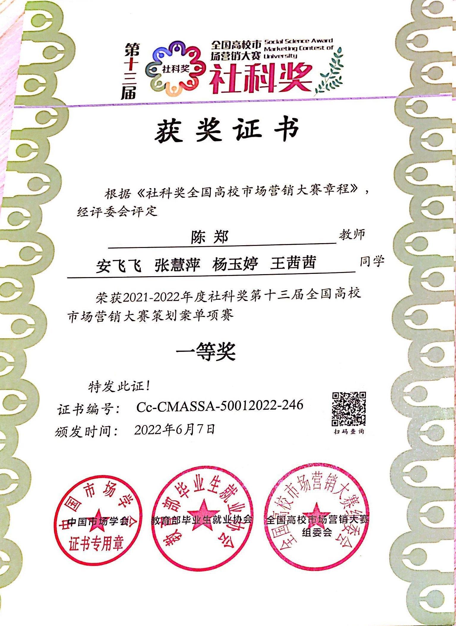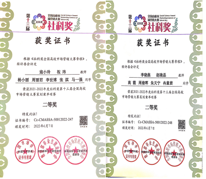 社科奖第十三届全国市场营销大赛从2021年6月开始拉开帷幕,共有480余所高校、2986支参赛团队、上万名高校学生参与到大赛中。比赛分为分项赛和全程赛,其中全程赛有营销策划和销售实践验证。由于疫情原因,本届大赛的复赛和决赛均为线上方式。决赛重点考察各参赛团队在营销策划方案、产品销售业绩、现场答辩等多方面的内容和效果。淬炼商学院市场营销教研室从大赛伊始就积极宣传、鼓励学生参赛,最终共有43支队伍、183人参赛,覆盖全校各个专业,规模较大。参赛团队在指导老师的悉心指导下,进行了历时近一年的培训,反复打磨策划文案,线下线上营销及远程在线答辩等,于2022年6月25日收到获奖信息和证书,具体为:全国总决赛分项赛一等奖1项、二等奖2项、三等奖6项,全程赛三等奖1项。比赛不仅锻炼了学生团队协作和撰写营销策划方案的能力,也提升了学生们的创新能力、知识整合能力以及营销实践技能。