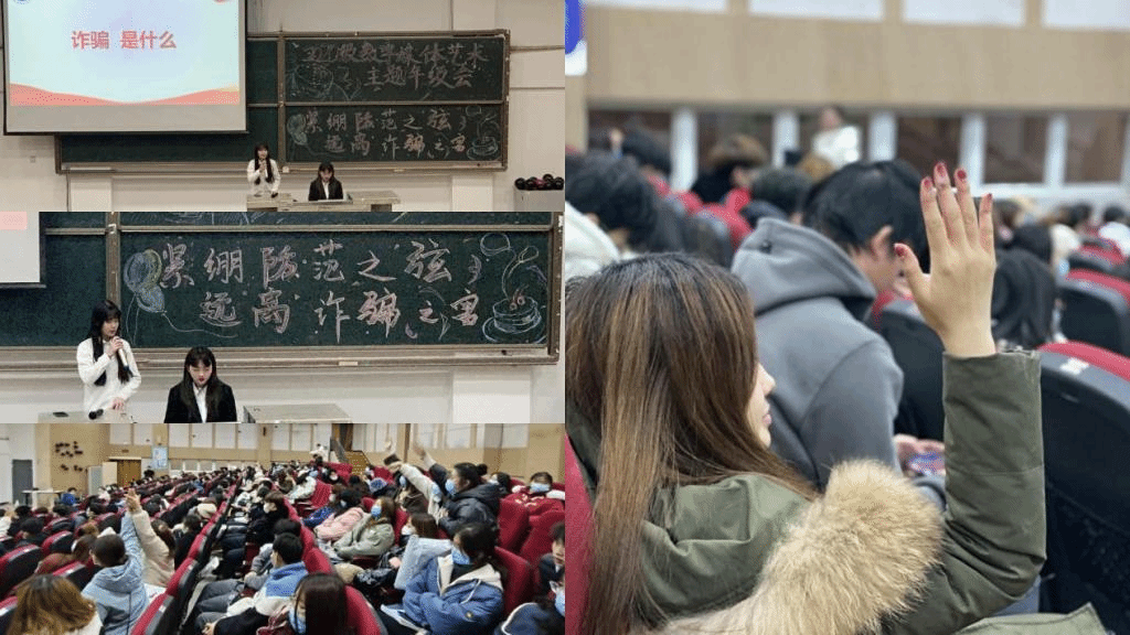 为提高 2020 级同学的防诈骗意识,提升诈骗信息辨别和自我防护能力,促进平安校园建设。12月16日,艺术传媒学院 2020 级数字媒体艺术专业在 3302 教室组织开展了“紧绷防范之弦,远离诈骗之害”主题年级会。本次主题年级会由辅导员许静老师带领 228 名同学围绕防诈骗知识科普、诈骗情景剧、诈骗受害者经历分享、填写防诈骗安全风险告知书等环节展开,全方位提醒同学们增强安全意识、警惕各类诈骗信息。