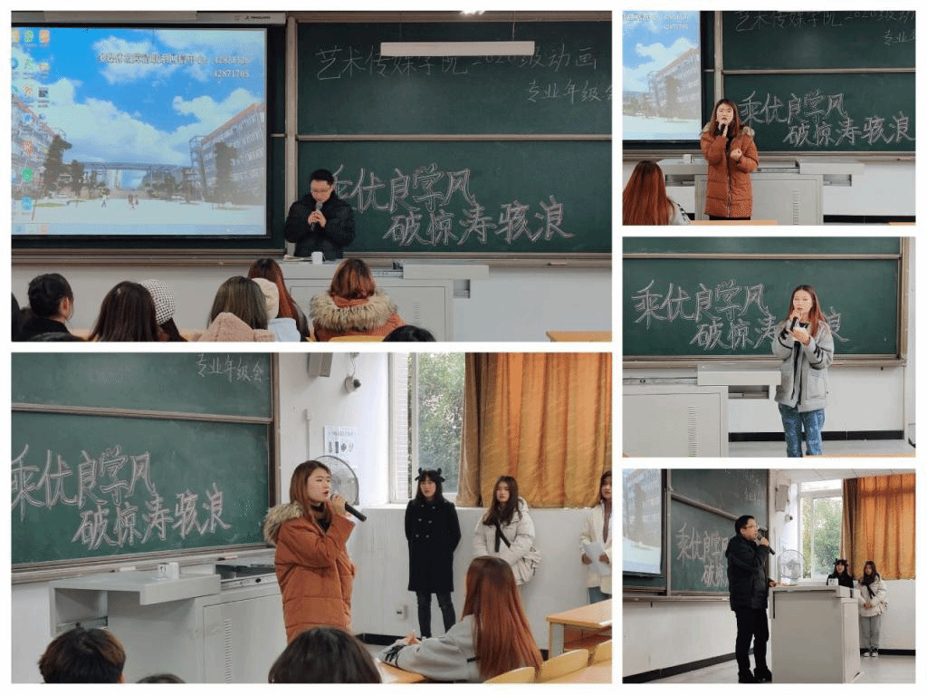 2020年12月23日,2020级动画专业举办的“乘优良学风,破惊涛骇浪”主题年级会于4202教室展开。本次会议针对同学们普遍存在的懒惰陋习,工作懈怠等问题进行逐一解疑,以此拨开前程迷雾,展现更好的艺传学子风貌。