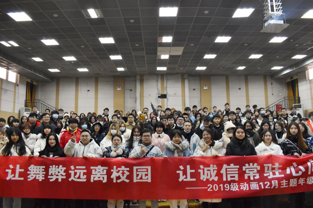 孔子言:“人无信不立,业无信不兴,国无信则衰”。诚信是社会道德的根基,对个人乃至社会的发展有着不可估量的影响。为营造诚实守信的校园文化氛围,2020年12月21日中午12点,艺术传媒学院2019级动画专业“让舞弊远离校园,让诚信常驻心间”的主题年级会在第三教学楼3302教室开展,促进学生互助交流的同时,弘扬诚实守信的思想价值观念。