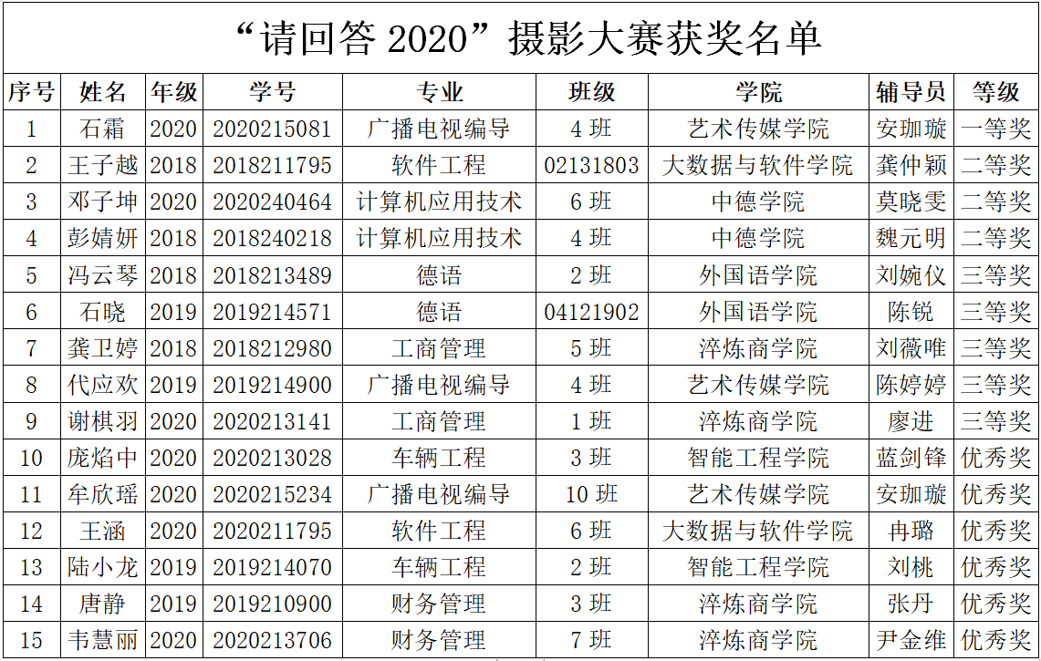 曾经以为很遥远的2020,已经进入了倒计时,在即将结束的2020年中既有欢喜亦有遗憾。在这个特殊的一年中,大家有太多太多难忘的记忆,在2020年发生的故事,也许没有惊艳到他人,但是却足够的温暖自己。不平凡的2020值得被记录。重庆邮电大学移通学院摄影协会于2020年12月5号起举行了“请回答2020”,线上摄影活动。在即将结束的2020年用照片留下属于自己的足迹。