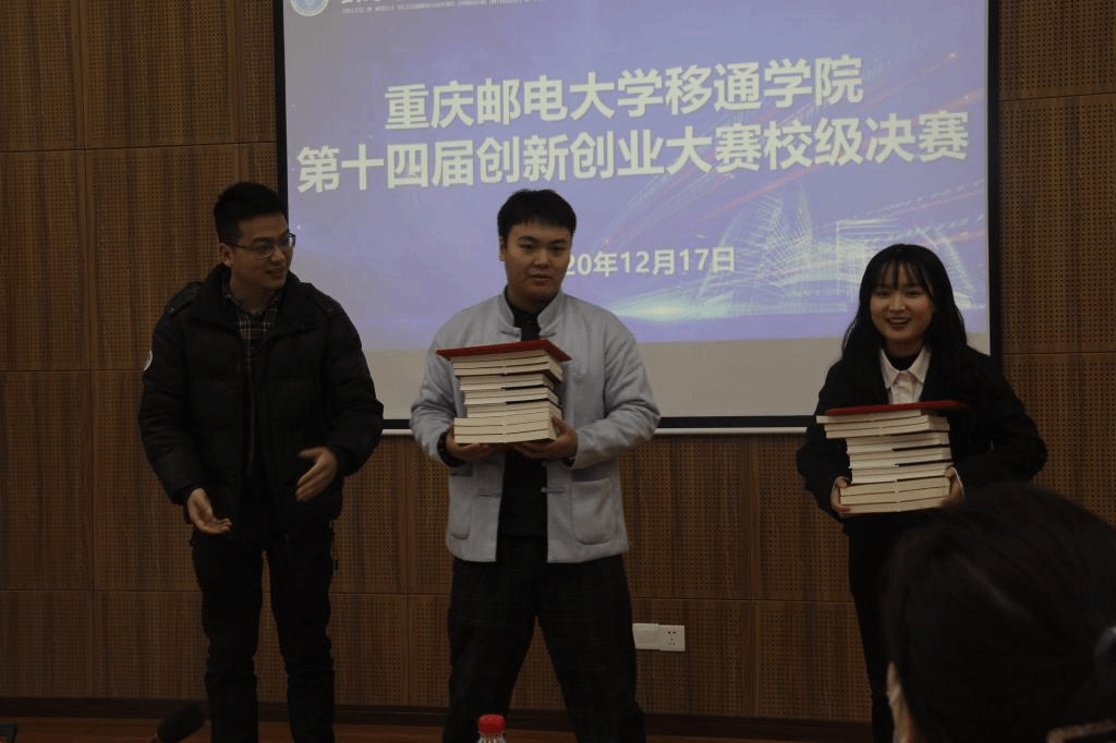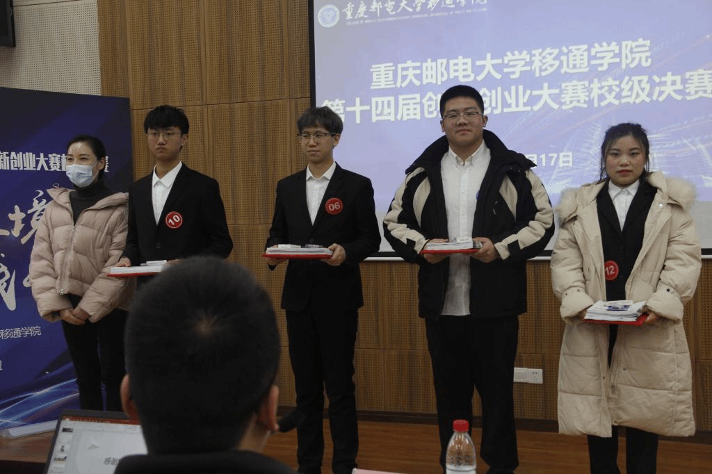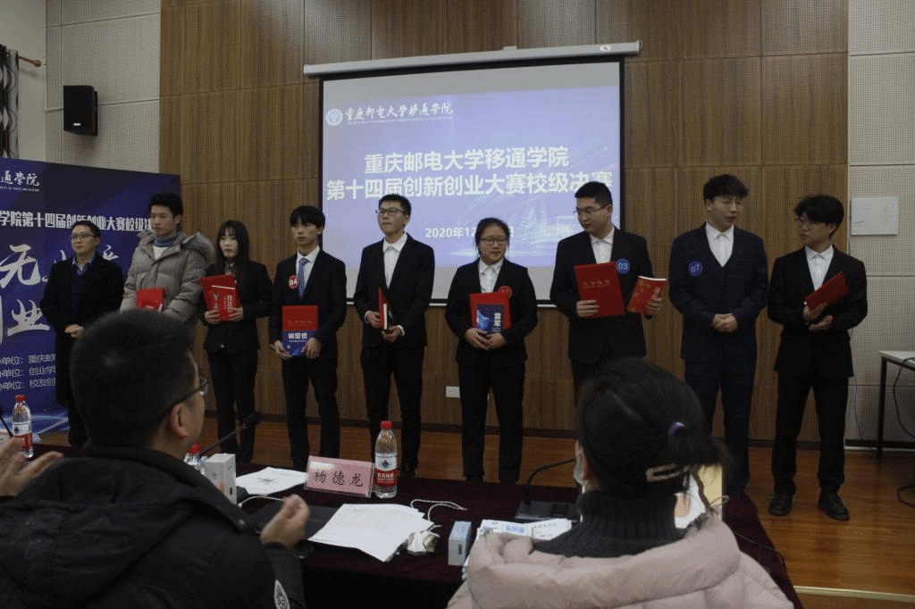 2020年12月17日14:00,重庆邮电大学移通学院第十四届创新创业大赛校级决赛在天渠书院天渠报告厅顺利开展。此次决赛有幸邀请到重庆师范大学涉外商贸学院就业指导中心副主任周昊老师,重庆邮电大学移通学院就业创业指导与服务中心主任助理杨德龙老师,校级高级创新创业导师卢伯年老师、刘久江老师,校级创新创业导师库导师陈星颖老师担任评委。