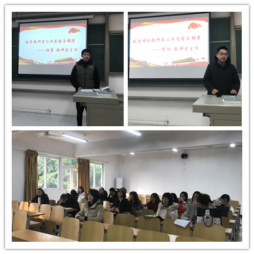 首先,政治理论教研室主任李阳,德育教研室主任杨勇,分别从课程建设、教学改革、与完满教育的融合、教师培养培训等方面对今年的工作进行了总结。今年各教研室紧密围绕学校总体工作思路,认真贯彻学校发展战略,以提升思政课的教育教学实效为目标,不断夯实基础、改革创新,各项工作稳步推进,取得了不错的成效:不管是面对突发疫情状况下依然规范有序的教学管理工作,还是获得重庆市级一流课程认定取得重大突破的《思修》精品课程建设,以及结合学校完满教育理念携手书院部协同育人工作的扎实开展,还有教师教学竞赛取得的可喜成绩,2020年,在思政教学部全体教职工共同努力以及卓有成效的工作下,在这个极不平凡的一年里,我们依然收获满满。