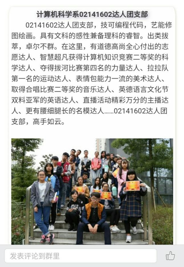 我是02141602支部的团支部书记,我不会忘记,我的02141602达人团支部。