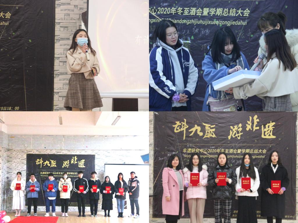 寒冬虽至,人心依暖。12月19日晚,“斟九酝·游非遗”——非物质文化遗产研究中心2020冬至酒会暨学期总结大会在C食堂四楼圆满举行。非遗中心彭伟、李凤勤老师及各部门全体学生研究员出席了本次活动。