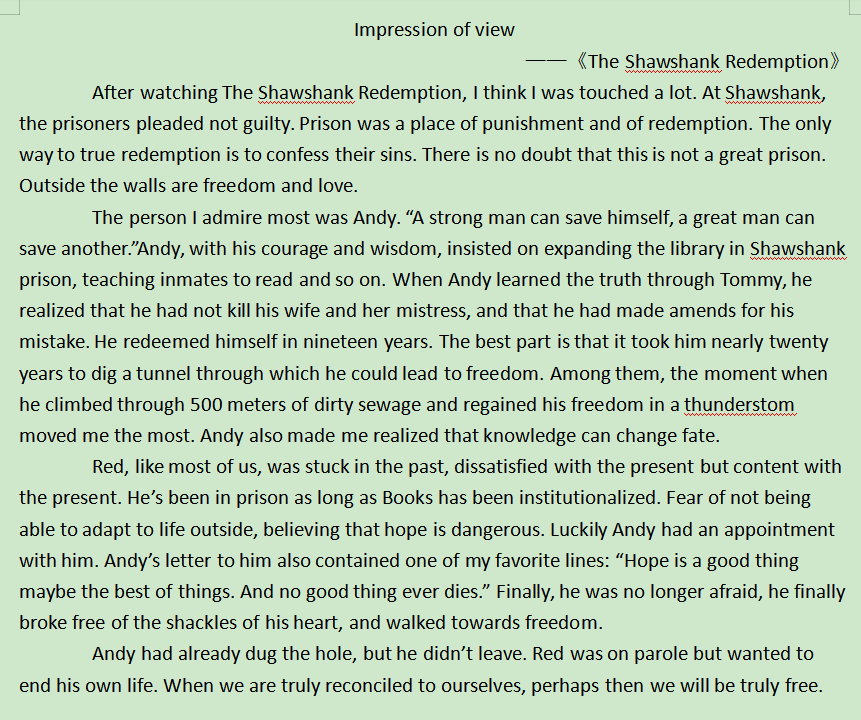 学习语言,需要将自己放进对应的语言环境,观看英文电影则是一个很好的选择。12月10日,第二届ABC训练营线上电影赏析会成功举办。训练营成员一起观看原文电影《肖申克的救赎》,并在电影结束后用记录下了自己对影片的所思所感。这次电影赏析会不仅锻炼了大家英语的听力和写作能力,同时也增添了同学们对生活的感悟。