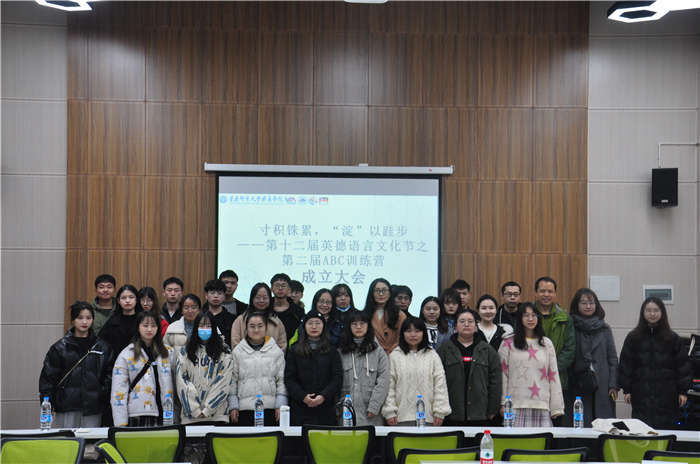 12月2日中午12:30,第二届ABC训练营成立大会在天渠报告厅圆满举行。外国语学院副院长祝玮老师、外国语学院社团板块指导老师刘婉仪、国际处老师向金梅老师以及训练营小组指导老师陈南艳老师、刘艺书老师、熊斌彬老师、曲美玉老师莅临训练营成立大会。会议宣布了本次训练营的课程安排,同时公布了第二届ABC训练营成员名单。陈南艳老师对同学们做出了活动寄语,希望同学们在训练营中提升自我、展示自我、沉淀自我。最后小组成员们进行了队伍风采展示。自此第二届ABC训练营成立大会顺利结束,同学们也开启了他们的学习之旅。
