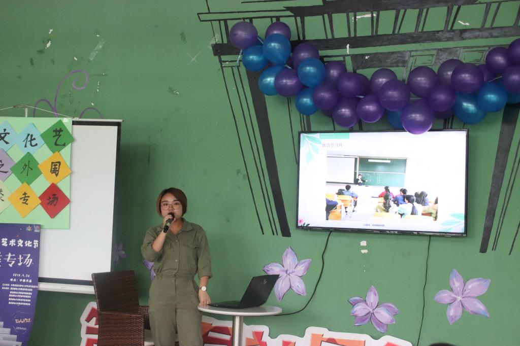韩流文化对我们的影响颇深,韩剧、韩国明星、韩国美食等数不胜数。韩语社社长通过给大家讲解韩语社举办的韩语课、社团办过的活动,社员参加巡礼节的表演等。其中“韩食节”活动让在场的社员们嘴馋不已,迫不及待地想要了解更多有关这个活动的东西,并期待下一次的参加。介绍完社团,社长还给我们观看了一段视频,展示了社员在巡礼节上的精彩表演,我们在赞叹动感的舞姿之余也深深感受到了韩语社的凝聚力。
