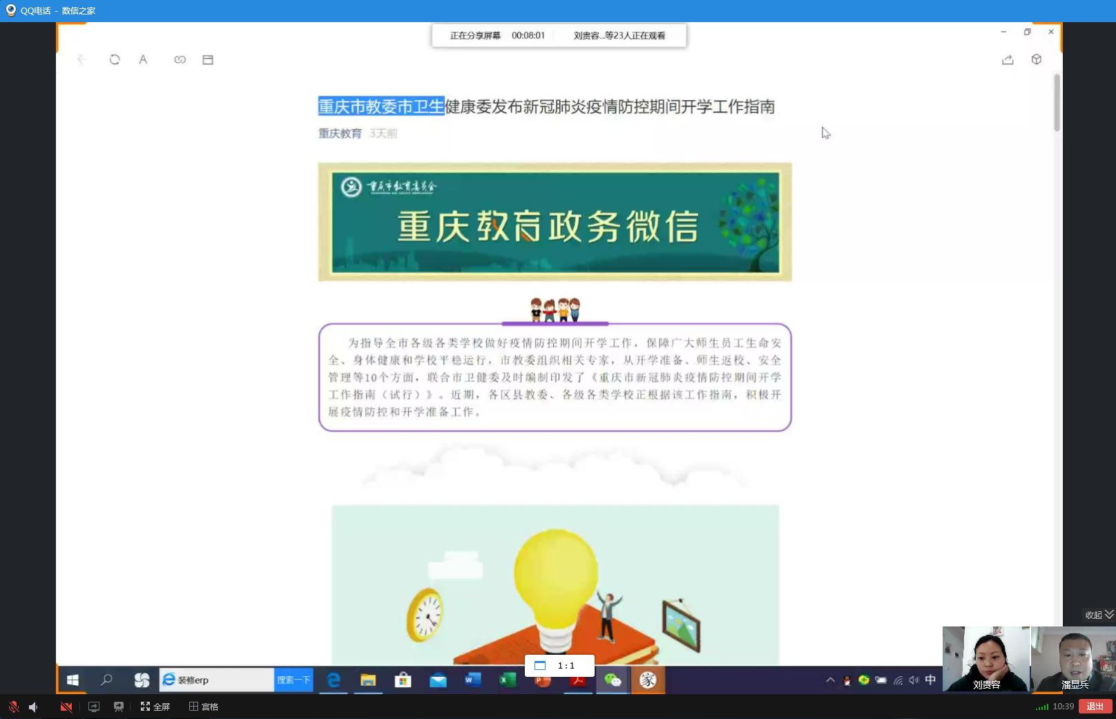 4月8日下午4点,数字经济与信息管理学院通过QQ群直播方式召开了学院教职工视频会议。随着疫情形势好转,学校即将从在线教学转为课堂教学,为保证教学工作顺利从线上转为线下活动,数字经济与信息管理学院高度重视、提前谋划、周密部署、制定预案。
