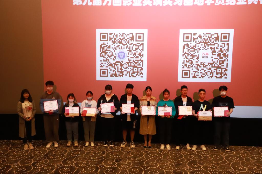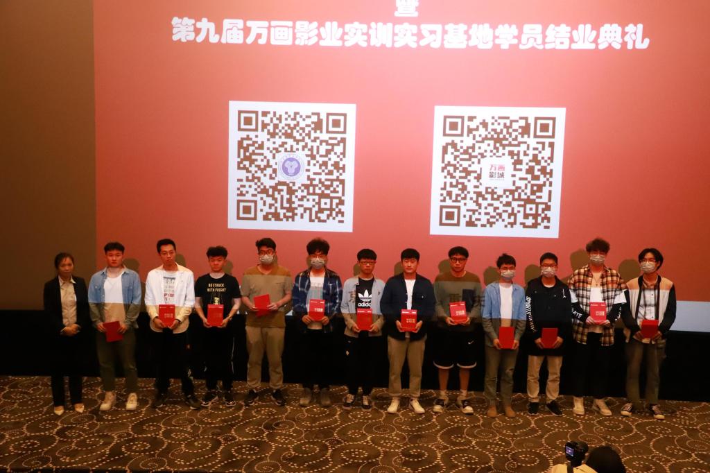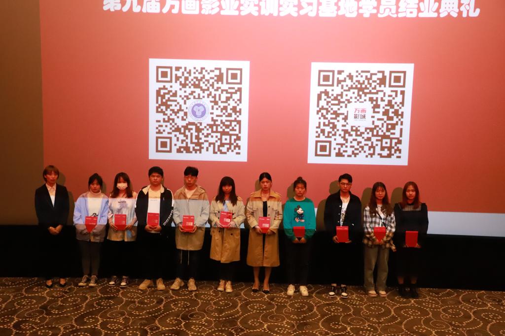 随后,主持人宣读第九期结业人员和优秀学员名单,共103名学员获得表彰奖励,其中优秀学员10名,优秀组长1名、三等奖5名、二等奖3名、一等奖1名,分别由万画导师张小玲、胡渝、杨磊,学校领导李克伟、梁少锋、胡婷,北京万画影业投资有限公司龙用意总经理为其颁发证书与奖励。