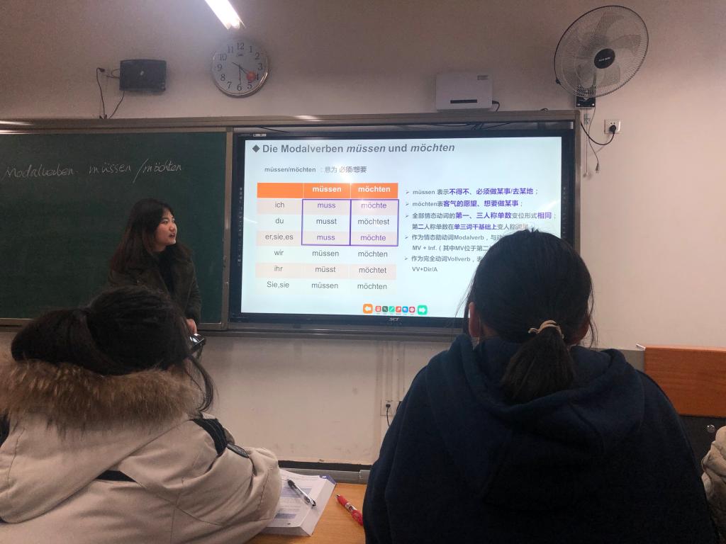 本学期,外国语学院新进多位青年教师,为提高青年教师的课堂教学技能,同时展现新教师教学水平,促进新教师快速成长,外国语学院于12月9日下午16:10在天渠104教室举行了新进教师公开课。本次公开课主讲教师为德语专业教研室武桐老师,主讲课程为《基础德语(1)》。外国语学院全体教师参加。