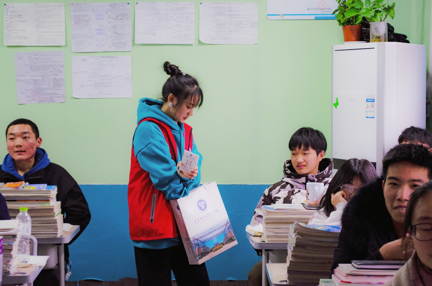 12月9号下午,招生宣传志愿者协会志愿者们前往荣昌安富中学进行志愿服务活动。此次分享之旅旨在为高中学子们分享学习方法以及展示精彩的大学生活。