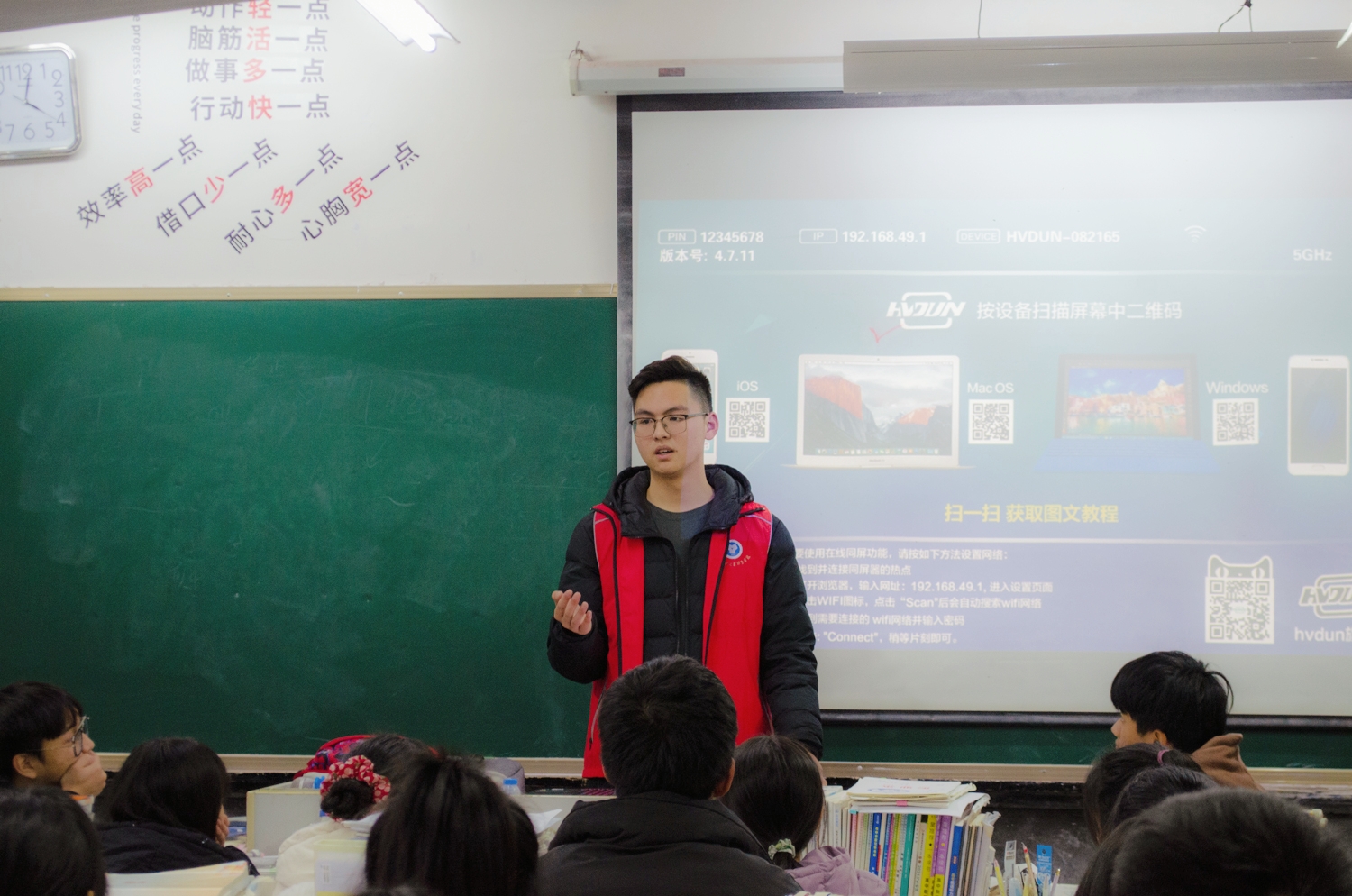 志愿者们分别在高一两个班级和高三两个班级进行分享。首先在高一的两个班级通过快闪视频与PPT图片为学子们展示了多彩的大学生活。