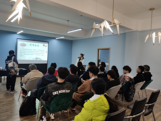 小课堂正式开始,由杨林社长为大家展示青茶的种类,让社员们充分认识青茶中的代表——乌龙茶,以及它的大体知识,还将社团的“铁观音”倒入茶荷,给在座的各位社员传阅,让他们更清晰更具体的知道乌龙茶的大体特质。