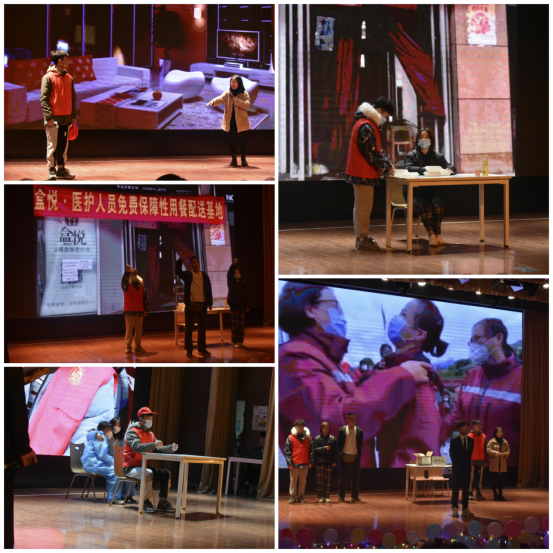 开场舞蹈《高踢腿》在表演者整齐划一的动作和欢快的音乐下点燃了全场,活动就此开始。“天下兴亡,匹夫有责。”在火热的氛围中,第一组选手搬砖大队上场,为大家带来节目《平凡的脊梁》,以抗击疫情为背景,讲述平凡的人们虽只能尽绵薄之力,但聚沙成塔活跃在抗疫时期的各个角落。当危机来临的时候,每个人都有可能成为拯救世界的英雄。