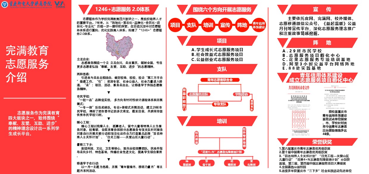 本次交流互动主要以移通学院为阵地集中营,融合西部10余所高校与我校优秀志愿服务理念与文化,立足合川、辐射重庆,使我校志愿服务项目得以近一步完善,志愿发展内容得以更新,同时号召了更多人参与志愿,融入志愿。