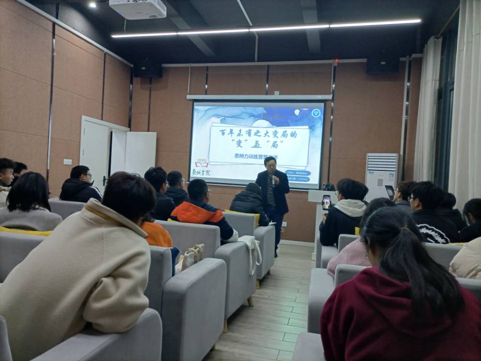 为引导学生提升思维敏捷性、语言逻辑性,培养学生批判与重构并重的思辨精神,营造我校浓厚的思辨氛围,进一步引导同学们深入了解思辨力、获得思辨力,2020年11月30日18:00,思辨力训练营第二讲在鱼城书院空格影音室拉开帷幕。本次课程的主题为:百年未有之大变局的“变”与“局”。