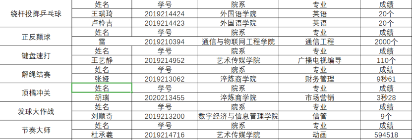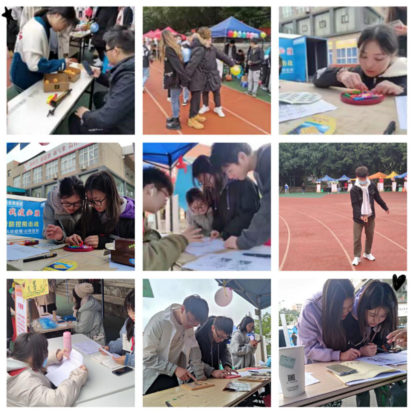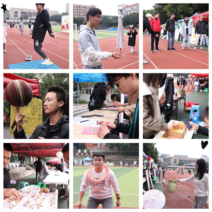 100个趣味挑战项目,竞技、趣味、休闲、益智,总有一款让师生们挑战自我,。从穿针引线、转笔、coin tower、猜灯谜到五步穿杨踢毽子等等各色游戏,无不为全校师生提供了一个属于他们自己的项目。给予他们一个挑战他人,挑战自我的平台。仅第一天就有2000余名同学参与挑战,记录随着比赛的进行也在不断的被突破。