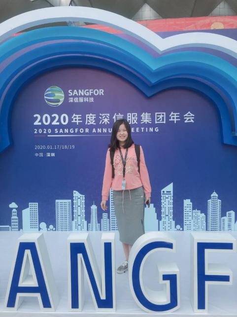 到现在,我已经开始正式接触部门业务。从最初对就业迷茫恐慌,到幸运进入深信服,从一开始磕磕绊绊地和客户沟通,到能够自如的对接客户,这所有的一切最终都可以用一句话归纳:越努力,越幸运。