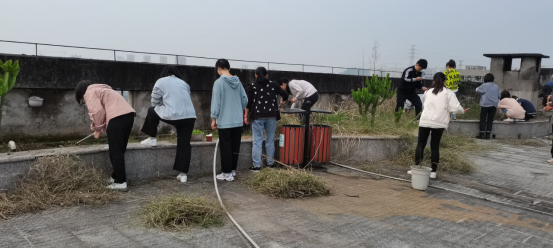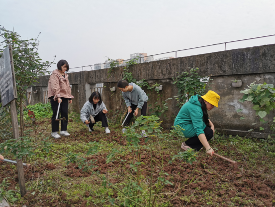 活动过半,太阳越攀越高,地面上渐渐清晰地分化出阳光和阴影两个面,同学们的发丝间也也在劳动中隐隐渗出细密的汗珠,但手中的动作未懈怠半分,越来越多的新泥从地底出现在阳光下。不知不觉中,花卉基地原本杂草重生的泥地已翻新六七分。同学们手下的动作越来越熟练,劳动带来的乐趣已经悄悄化进每个同学的心里,奉献劳作的种子也随之埋进土里。