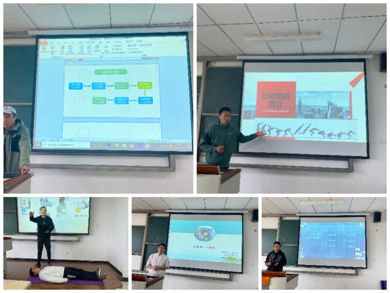 竞赛中,孙海静老师、陈天青老师、王伟伟老师、冉海波老师、杨闯老师等5位参赛老师分别从足球运动的起源与发展、如何跳得更远、急救基本知识与技术(心肺复苏)、五禽戏(猿戏)、射艺勾弦法等5个不同运动项目为讲授选题进行课堂教学展示。