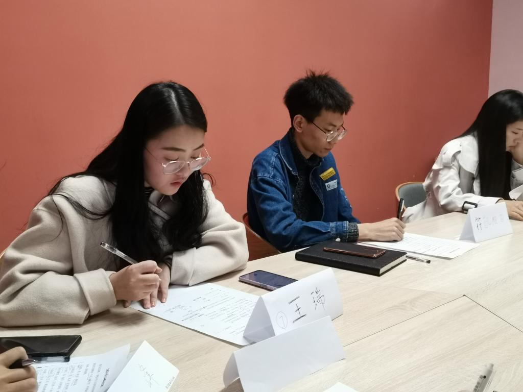 无领导小组讨论实训工坊采用“双院导师联动、职场环境模拟、理论学习指导以及真题沉浸实战”的模式,通过“一师一队”的专项指导方式,引导书院学子学会在职场中熟练运用统筹、博弈的能力。