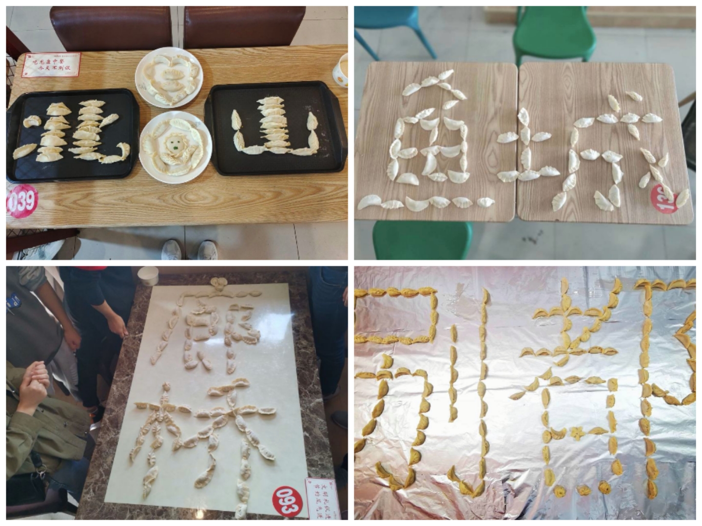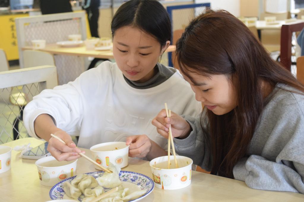 6个食堂窗口,煮饺子的热气在空气中翻腾,早已将餐桌上食材处理好的队伍,在窗口有序等待队员们合力亲手包好的饺子的出锅,耐心地等待着即将来临的一场家人盛宴。同学们来自不同的城市,对饮食的口味也不尽相同,蒜香味、麻辣味、胡椒味等口味的调料搭配着猪肉白菜馅儿、猪肉香菇馅儿的水饺,开启了同学们初冬时节在校园内便能够享受到的家乡味道之旅。