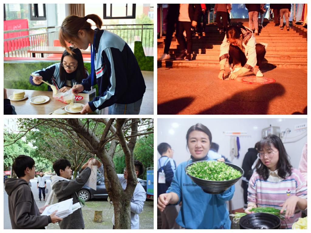策划和开展仪式感满满的活动,幕后是来自鱼城书院和北山书院的120余名学生干部的尽心尽力。活动前期,20余名同学在书院发展导师的陪同下,前往合川区各大菜市场,精心为家人们采购和准备食材。走在校运动场的主干道、天桥等地方,环顾便可发现带有众多“饺子元素”的地贴和展板,传达的节日文化、团聚氛围十分浓烈,不少学子表示一夜之间看到了“小惊喜”。