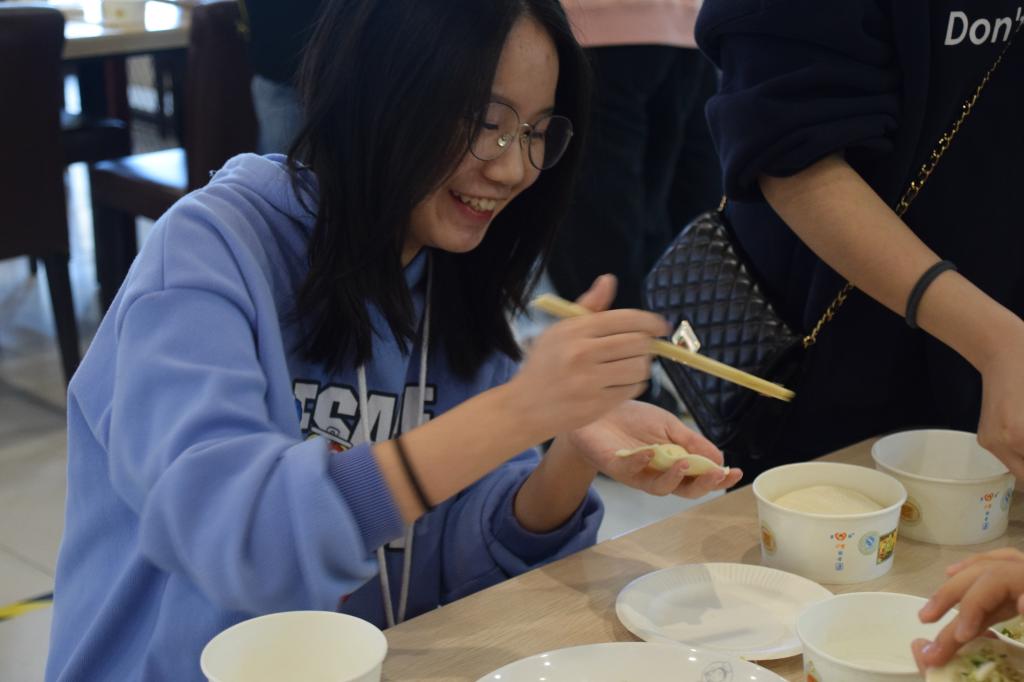我和室友是第二次一起参加立冬饺子节,在短短的两个小时里,我们度过了一段非常快乐的时光。我不是重庆本地人,所以给我最大的感受是我不会在另一个城市感到孤单。在我家乡立冬是亲人朋友欢聚一堂的日子,有吃饺子之后寒冷就会被驱散的习俗和说法。很喜欢学校的书院,在很多时候都能带来亲人一般的关心,现场氛围其乐融融,当吃到自己亲手包的饺子的时候,十分开心和满足。于我而言,我度过了一个好玩、温暖而有爱的饺子节。