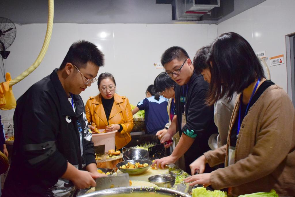 这是初次作为举办者的角色参与到饺子节活动中,在活动前期筹备和现场开展工作的时候,我们开过很多次小组会议,做到每一位组织者都能熟悉现场的流程。我后期去到了厨房备菜区,和书院老师一起准备白菜和香菇馅儿,从淘洗到切碎,再到和肉泥一起混合调味,过程是很辛苦的,但还是比较兴奋吧,因为这是我在北山书院学生组织第一次体验到“举办者”角色的成就感。