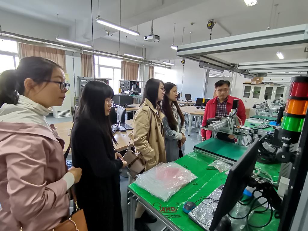 调研会后,在陈院长的带领下参观电气与自动化工程学院实验实践中心的专业实验室和创新平台,陈院长介绍了各实验室的实验设备、对应的课程、开设的实验内容和实验室的管理模式等。创新实验平台李鑫老师介绍了创新平台的组成和学科竞赛的组织管理方式,创新平台中部分竞赛项目课程化,如单片机课程的实践设备由教师自行开发,并编写相应的教材,双方在参观交流中探讨了创新实践的可持续发展模式。
