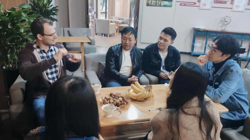 会议开始前,德语教研室向Elias赠送了带有中国特色的“小礼物”——中国茶叶,欢迎他加入中德学院德语教学团队。