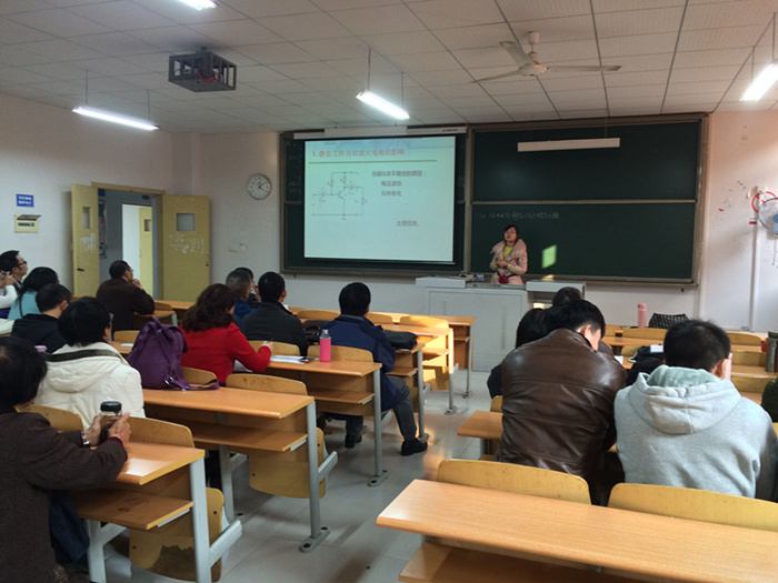 本次示范课的题目是“放大电路静态工作点的稳定问题”,该内容涉及概念多,与实践联系紧密,是《电子电路基础》课程中的一个重、难点问题。张媛老师根据课程特点,对本次示范课进行了精心设计与准备,教学内容体系完整、条理清楚、重点突出。