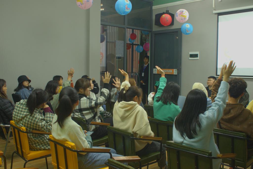 在黄停停校友和朱应霞校友分享后,同学们都积极的与校友进行交流。其中同学们最关心的就是是关于考研和就业方面的问题。面对同学们的困惑与迷茫,校友给出了切实可行的建议。首先,在大学期间尽可能地多学习技能,不断地丰富自己的内涵,提升个人能力;其次,考取相关的证书,如英语四六级、计算机二级以及专业性的证书,最后,对自己给与肯定,充满自信才能无畏将来。